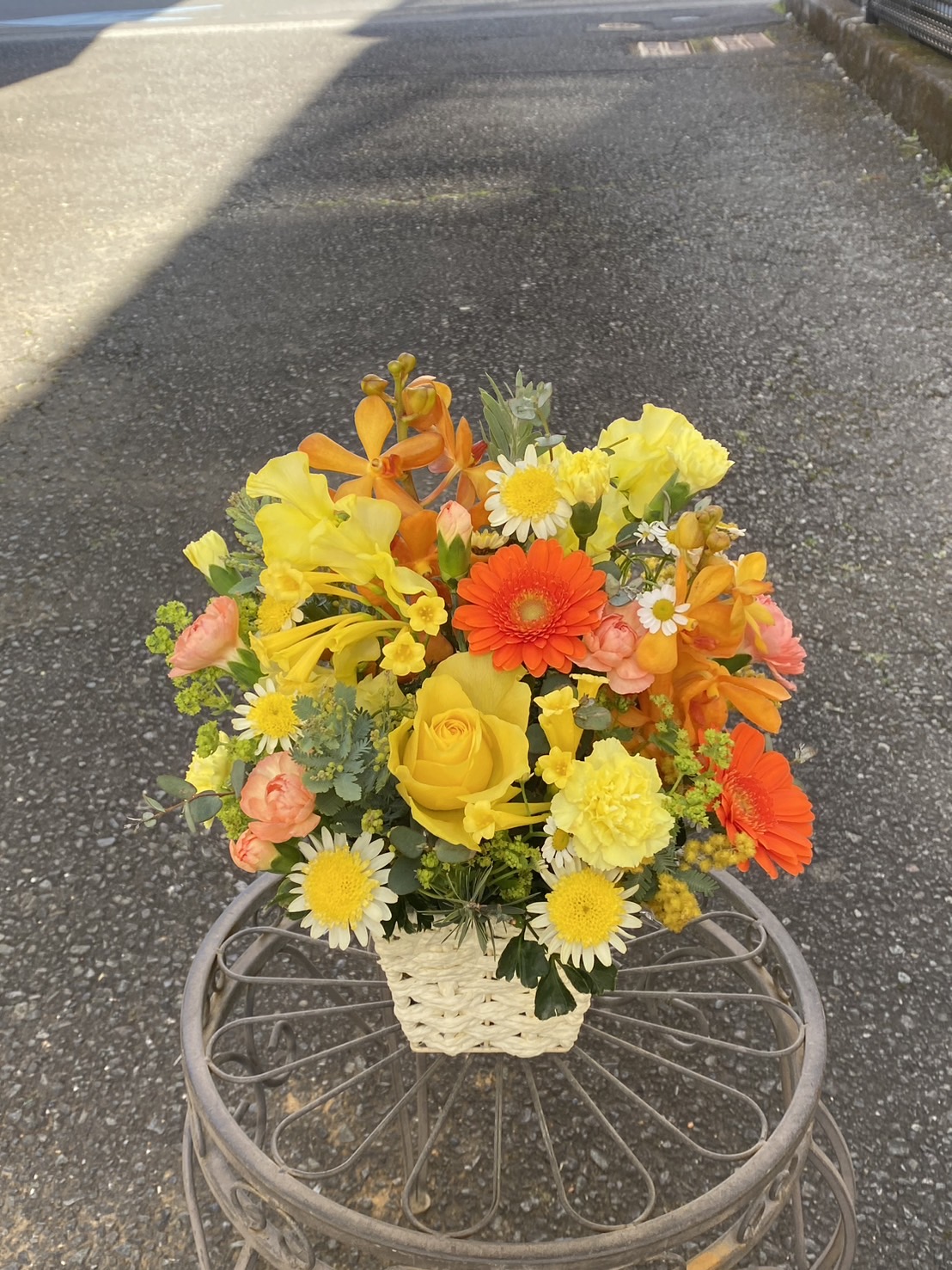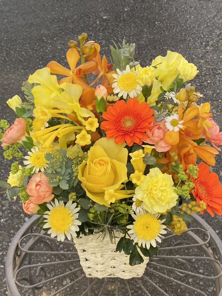 そんなイメージでお作りした、ビタミンカラーのフラワーアレンジメントです。